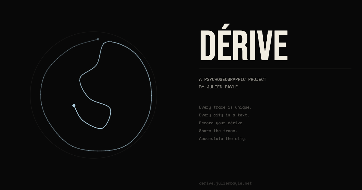 DÉRIVE works against that grain. It records your trajectory, not to store it, but to transform it. GPS coordinates never leave your device. What travels is only the rendered shape: a minimal glyph, a trace abstracted from geography, reduced to its essential gesture.